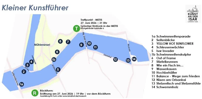 Im Sommer 2026 wird die Isar in Landshut zum Ausstellungsraum. Kunst an der Isar zeigt zeitgenössische Kunst im öffentlichen Raum – direkt am oder im Fluss, offen für alle Menschen.