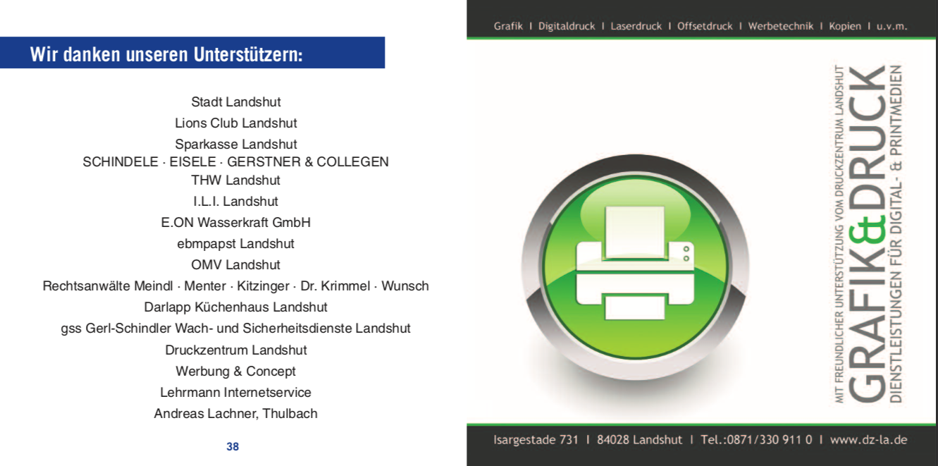 Platzierung Ihres Logos auf Kommunikationsmaterialien wie unseren Plakaten, unserer Broschüre (siehe unten) und unseren Online-Kanälen. Bei den vergangenen Veranstaltungen wurde Kunst an der Isar unter anderem in der Süddeutschen Zeitung, im Bayerischen Rundfunk sowie mehrmals in der Landshuter Zeitung porträtiert (siehe auch unter Presse).
